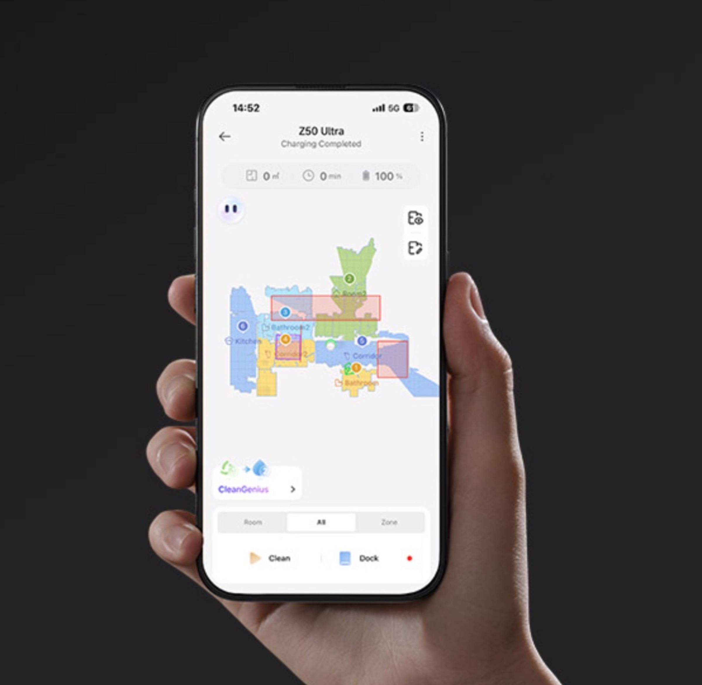 Altro elemento distintivo è la tecnologia AI Sensing che combina alcuni sensori sul robot con quelli presenti sulla stazione base e con un sistema binoculare per rilevare il livello di sporco e adattare automaticamente la strategia di pulizia. Il robot è anche in grado di suddividere le aree da trattare e decidere se sia necessario lavare nuovamente il panno prima di proseguire.