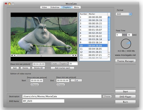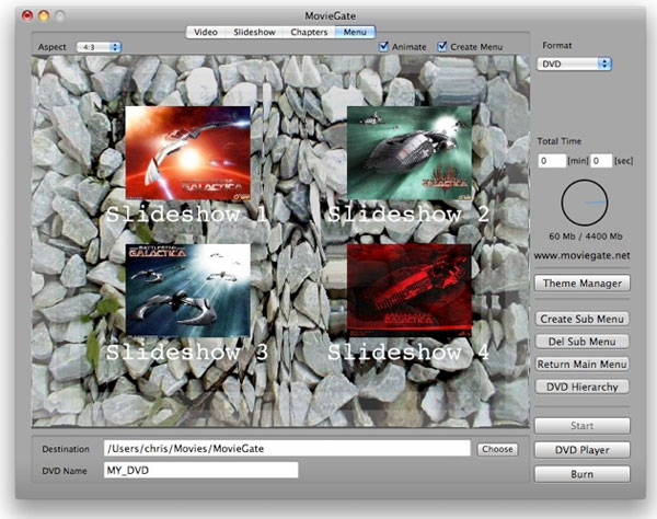 MovieGate è un programma per l’authoring dei DVD: offre una interfaccia grafica semplice da utilizzare per sfruttare le funzionalità offerte da diversi software open source. Il programma sfrutta inoltre le principali tecnologie integrate in Snow Leopard per velocizzare le operazioni di codifica video.