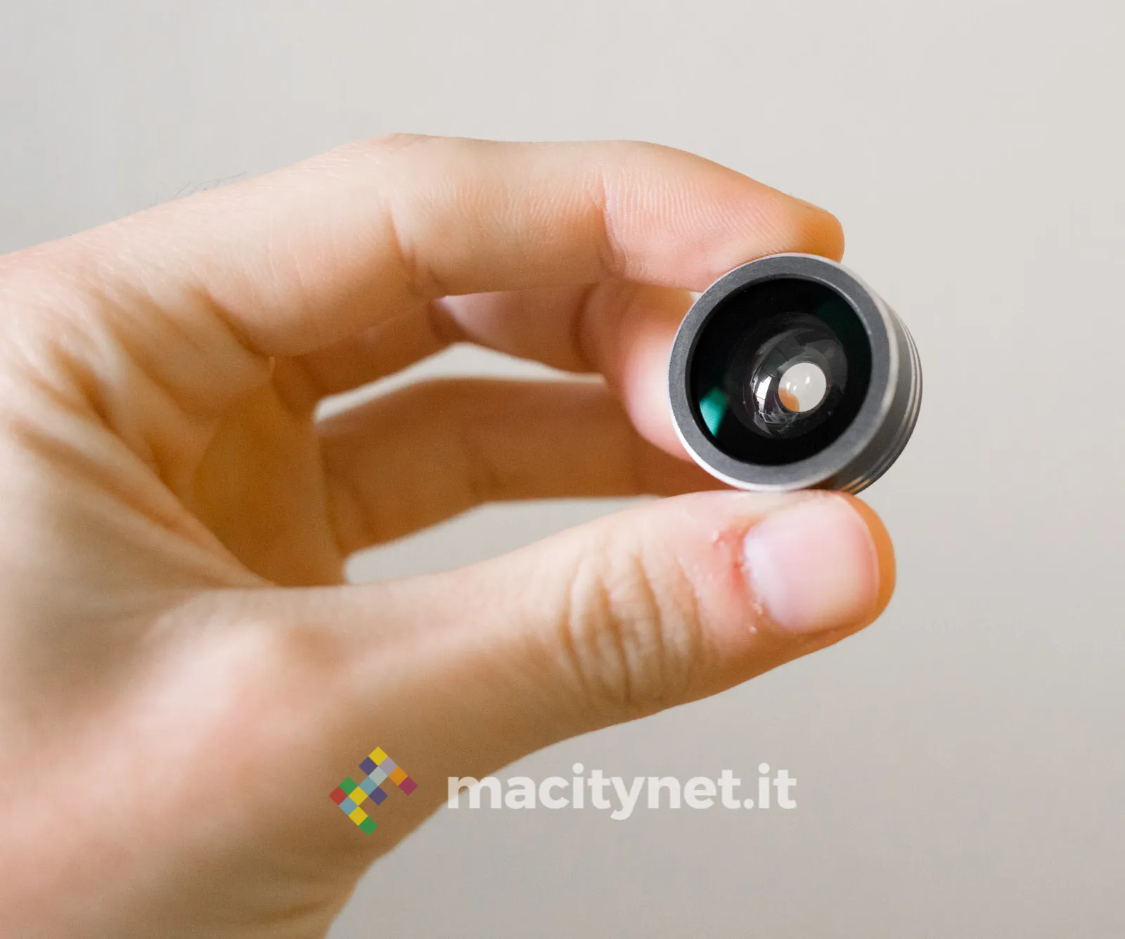Nel caso specifico è garantito da un sistema a clip che blocca la lente in posizione sopra la fotocamera del telefono permettendo così di agganciarla e sganciarla in pochi secondi per ottenere l’effetto FishEye, oppure per scattare una fotografia grandangolare o una macro.