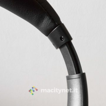Le cuffie sono costruite interamente in policarbonato di buona qualità, satinato al tatto e irrobustito da un’anima di metallo che si intravede quando si distanziano i padiglioni dall’archetto per regolarne la lunghezza. Pesano intorno ai 250 grammi e risultano piuttosto comode per via delle ottime imbottiture che troviamo sia nell’archetto che nei cuscinetti dei padiglioni, con gomma piuma all’interno e una soffice copertura in simil-pelle fuori.
