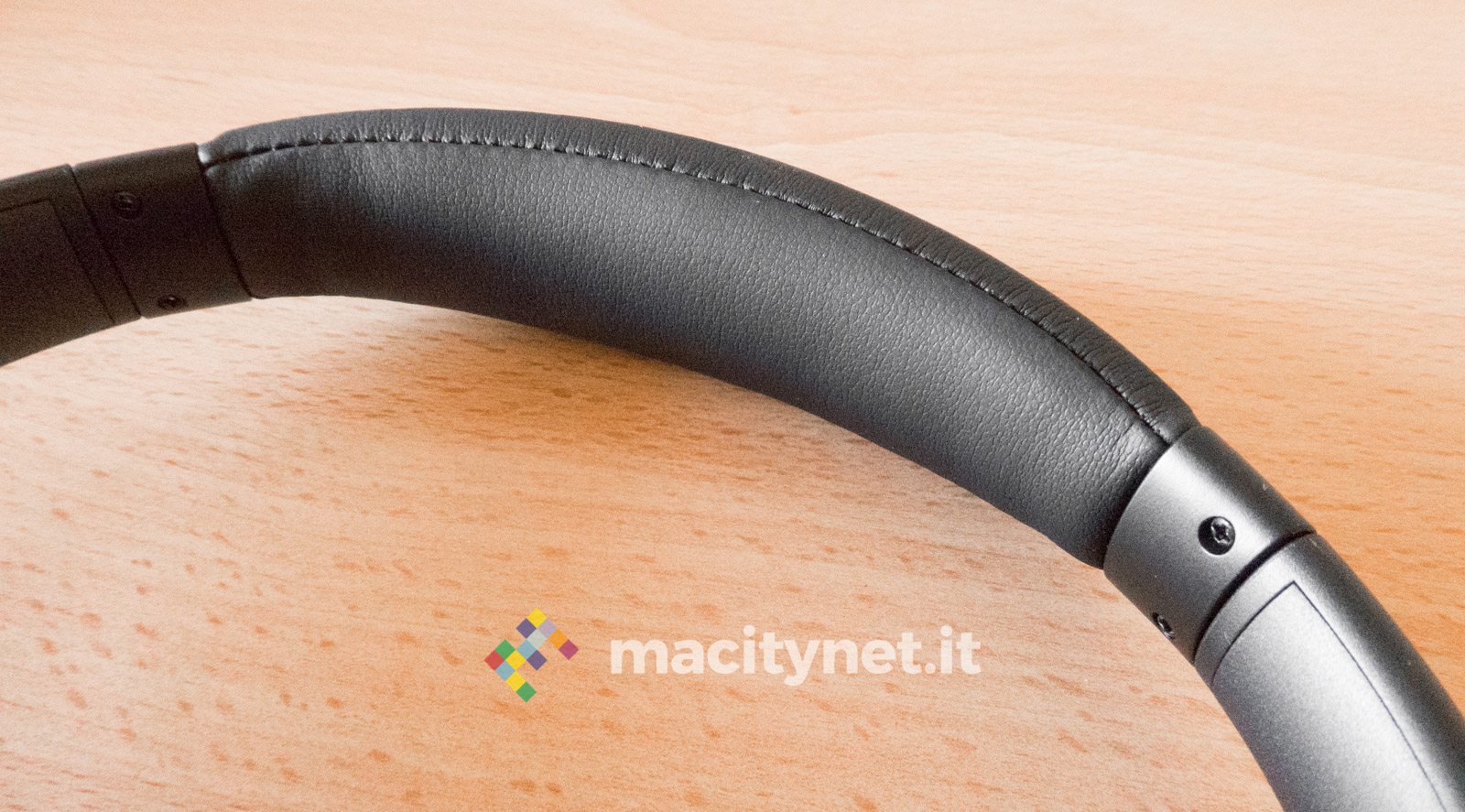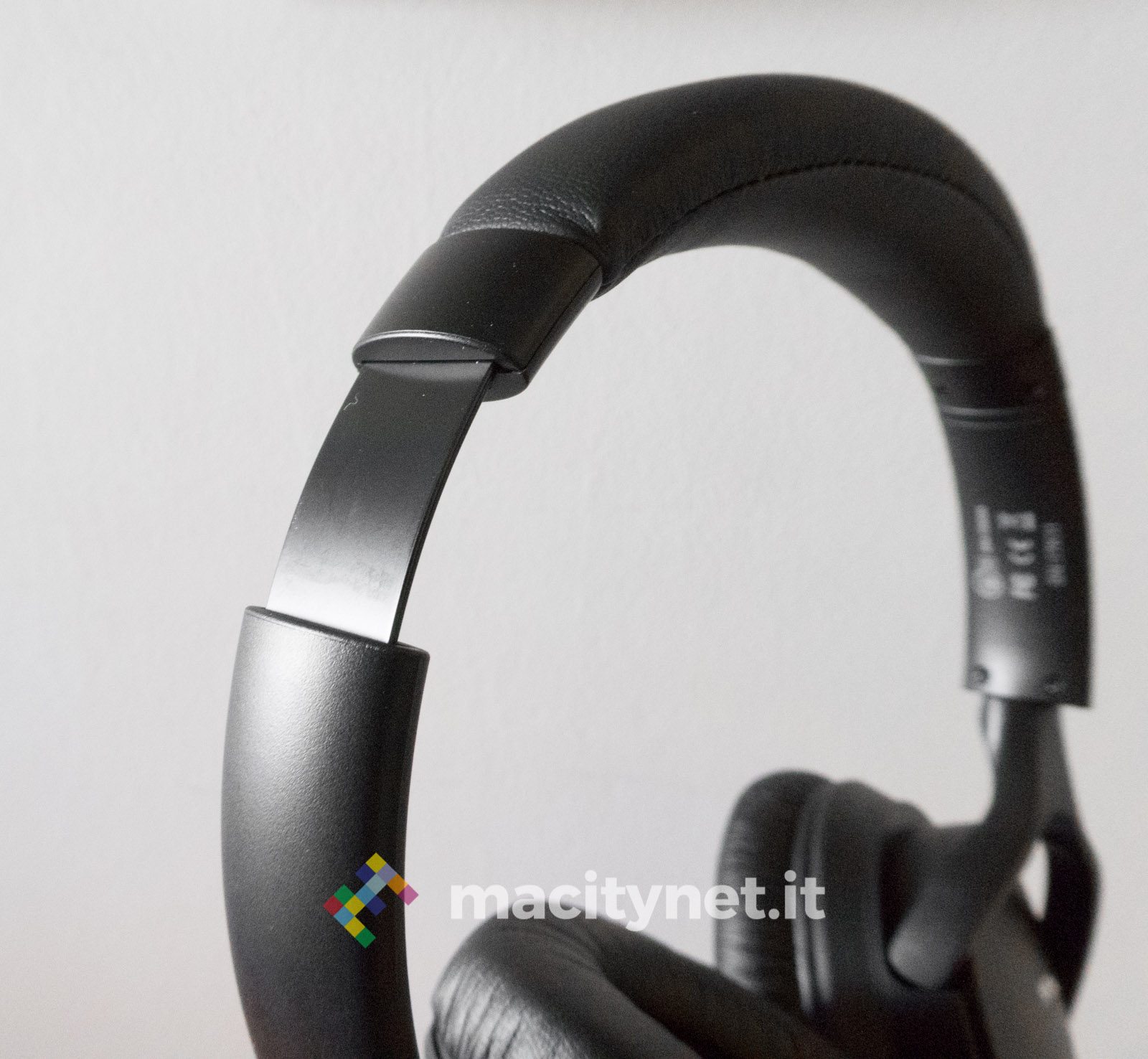 Le cuffie sono costruite interamente in policarbonato di buona qualità, satinato al tatto e irrobustito da un’anima di metallo che si intravede quando si distanziano i padiglioni dall’archetto per regolarne la lunghezza. Pesano intorno ai 250 grammi e risultano piuttosto comode per via delle ottime imbottiture che troviamo sia nell’archetto che nei cuscinetti dei padiglioni, con gomma piuma all’interno e una soffice copertura in simil-pelle fuori.
