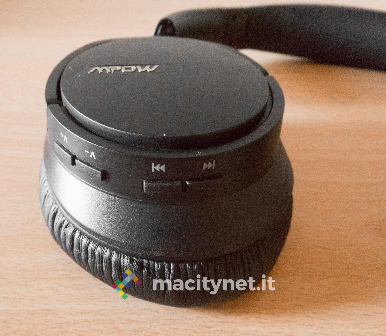 Diversamente da altre offrono tutti i controlli utili per gestire la riproduzione musicale direttamente lungo la cornice di entrambi i padiglioni. Sul sinistro troviamo il pulsante On/Off che funge anche da tasto Play/Pausa, il foro per il microfono e i due ingressi jack audio e microUSB per la ricarica della batteria interna protetti da due tappi in silicone. Sul padiglione sinistro trovano invece posto i due tasti per la regolazione del volume e altri due per il salto delle tracce (in questo modo non dovremo imparare le sequenze di click come accade invece in altre cuffie con tasti che condividono più funzioni in quanto qui ciascuno eseguirà una sola azione).