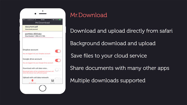Mr Download è universale, richiede iOS 8.0 o versioni successive è compatibile con iPhone, iPad e iPod touch e costa 1,99 euro ed è disponibile su App Store
