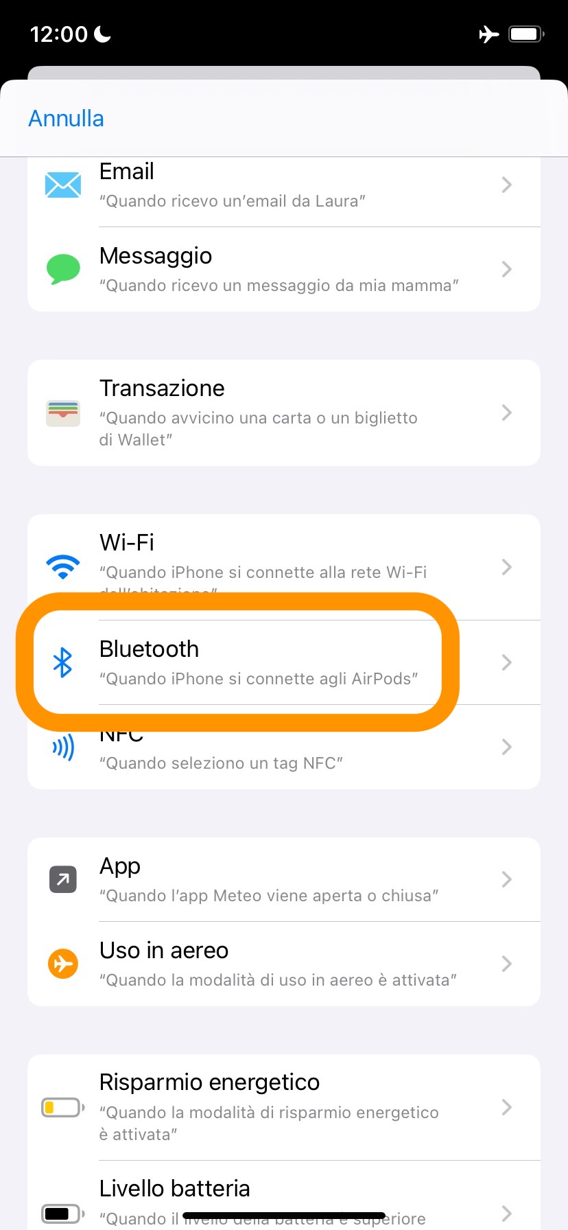 Se per qualche motivo volete interrompere anche solo per un periodo l’avvio automatico della musica quando collegate iPhone a uno o più dispositivi Bluetooth, potete disabilitare la relativa automazione senza doverla necessariamente cancellare. Nel caso, fate così: