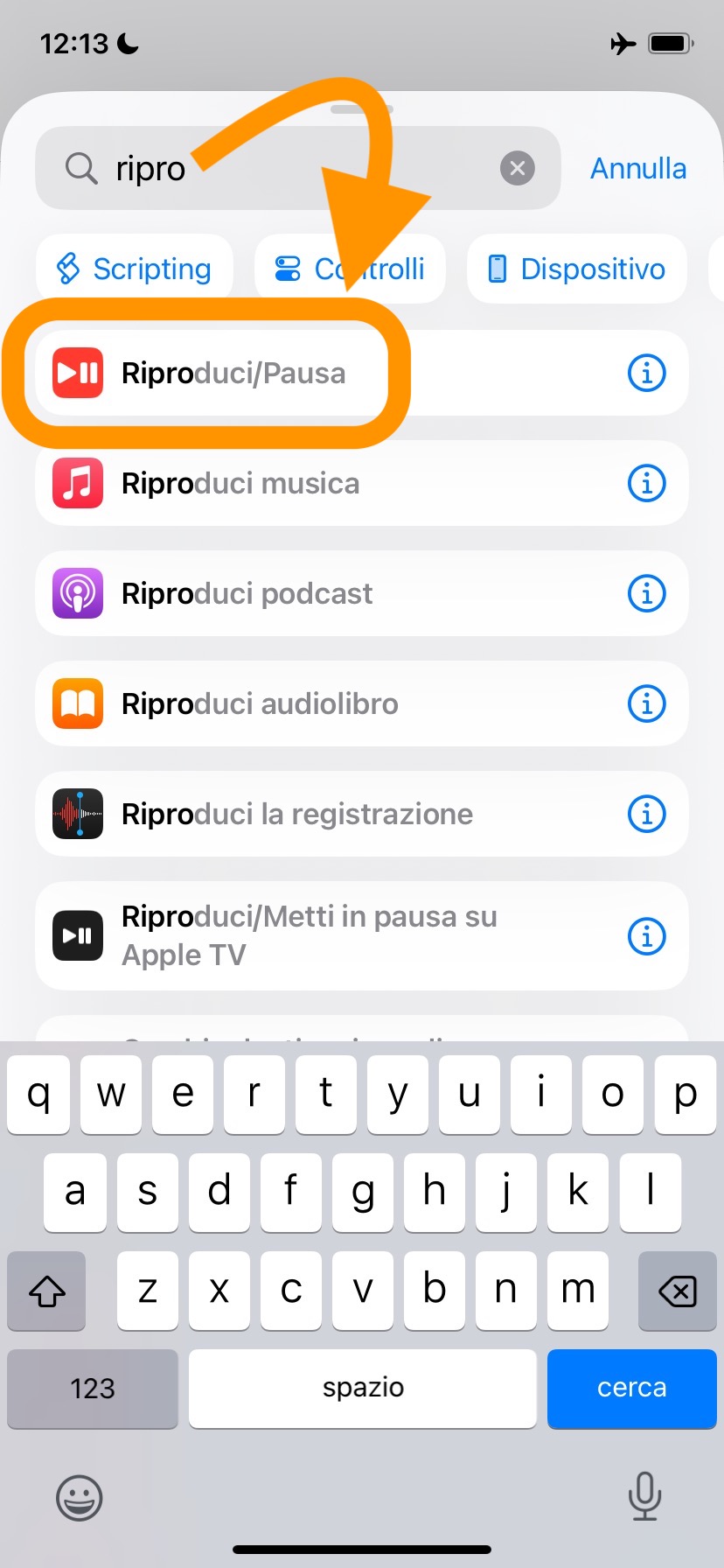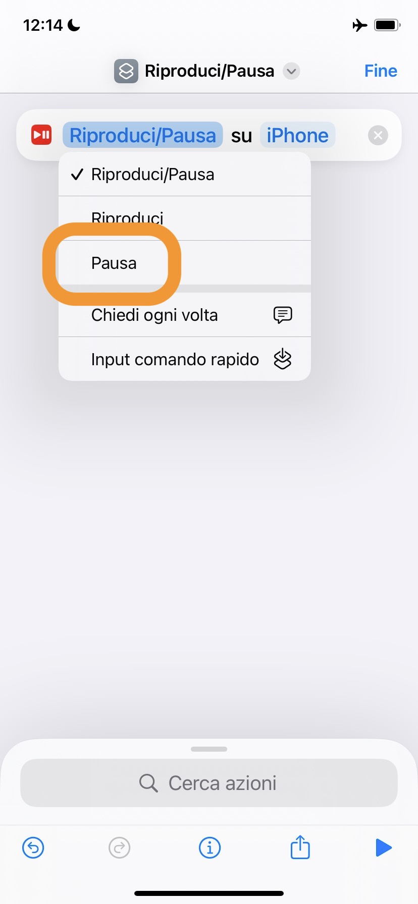 • cercate l’azione Riproduci/Pausa, quindi selezionatela;