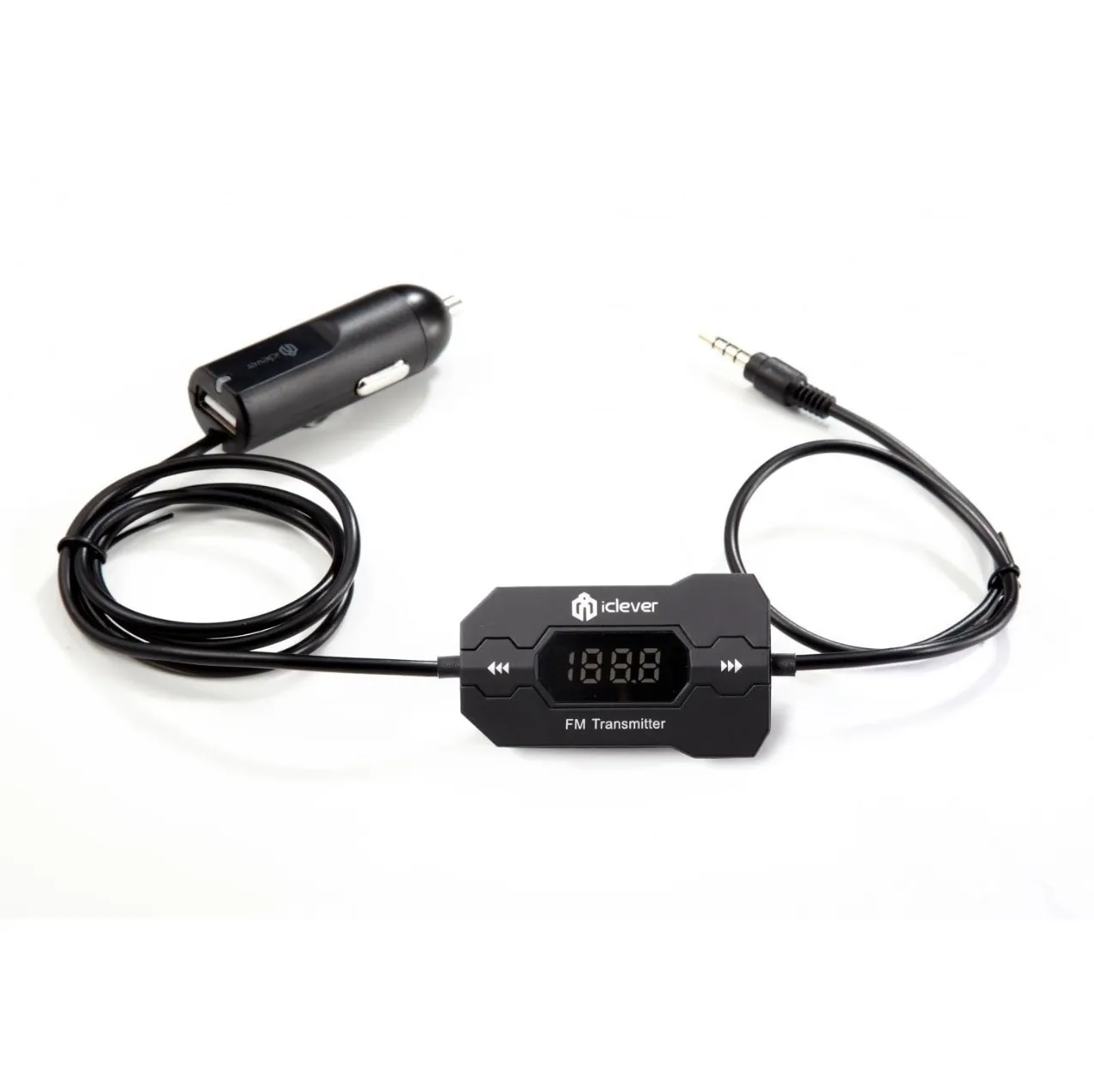 La chiave di questo accessorio è una doppia connettività wireless: da una parte iClever IC-F40 si collega a smartphone, tablet, ma anche lettori MP3, lettori CD e così via attraverso il cavo jack da 3,5 mm. Dall’altra manda in FM, su un canale libero della radio, il suono che riceve da questi dispositivi. In questo modo non sarà necessario avere una porta AUX a disposizione per avere la musica nell’abitacolo o fare telefonate nel caso di collegamento di un telefono o uno smartphone. Il sistema è alimentato dalla presa per l’accendisigari (si dovrà quindi avere spazio a sufficienza per collocarlo) e ha anche una presa USB incorporata. In sostanza l’accendisigari, oltre che far funzionare l’IC-F40, sarà anche in grado di ricaricare uno smartphone.