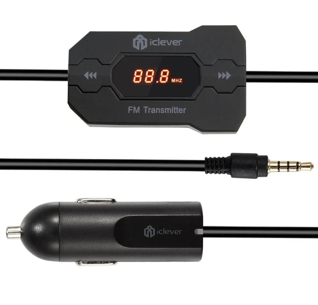 La chiave di questo accessorio è una doppia connettività wireless: da una parte iClever IC-F40 si collega a smartphone, tablet, ma anche lettori MP3, lettori CD e così via attraverso il cavo jack da 3,5 mm. Dall’altra manda in FM, su un canale libero della radio, il suono che riceve da questi dispositivi. In questo modo non sarà necessario avere una porta AUX a disposizione per avere la musica nell’abitacolo o fare telefonate nel caso di collegamento di un telefono o uno smartphone. Il sistema è alimentato dalla presa per l’accendisigari (si dovrà quindi avere spazio a sufficienza per collocarlo) e ha anche una presa USB incorporata. In sostanza l’accendisigari, oltre che far funzionare l’IC-F40, sarà anche in grado di ricaricare uno smartphone.