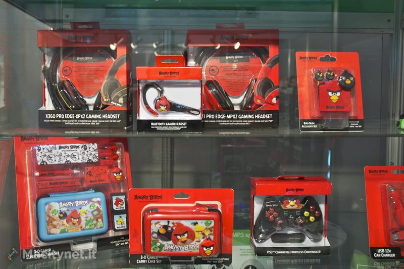 La realtà è stata più piacevole e sorprendente: piacevole perché ci è stata mostrata una linea di merchandising ispirata agli uccelli terribili di Rovio. Custodie per cellulari, cavi, cuffie, casse acustiche, caricabatterie, prese accendisigari, quasi qualsiasi cosa possiate immaginare, marchiato dalle inconfondibili sagome dei pennuti volanti bidimensionali.