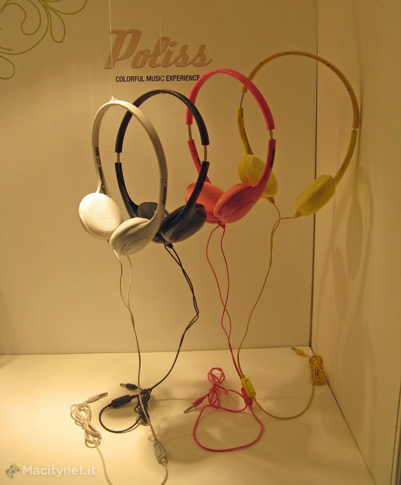 Qui la serie di cuffie Poliss tutte dotate di microfono e utilizzabili sia per l’ascolto della musica, film e giochi, sia per le telefonate. Il tasto nel filo-comando permette di chiudere e rispondere alle chiamate
