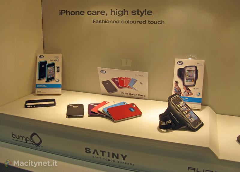 La linea di cover per iPhone 4 e iPhone 4S con i modelli in stile bumper a destra, le Satiny infine con la arm-band per trasportare e proteggere iPhone durante lo sport e le attività all’aperto
