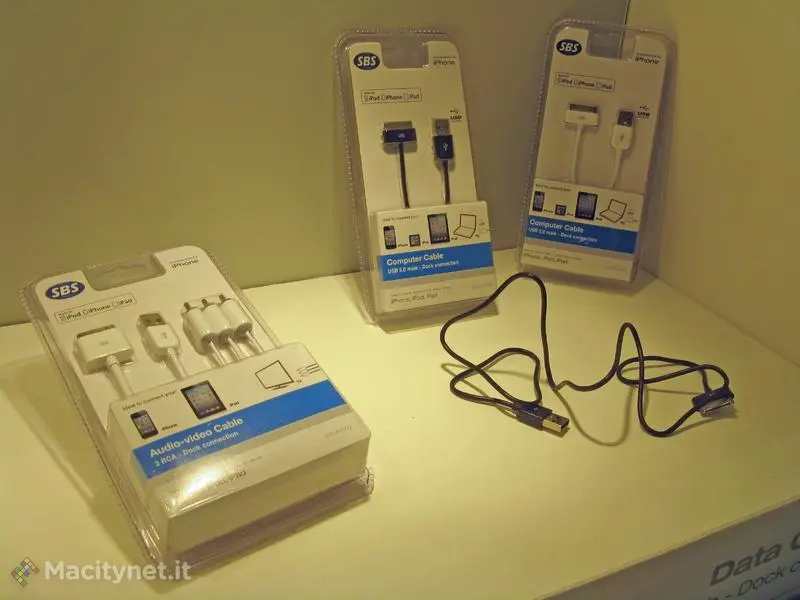 Segnaliamo gli accessori Bluetooth per l’auto, con il kit vivavoce BT da applicare all’aletta parasole per gestire le chiamate senza dover toccare iPhone, e il sistema SBS Bluetooth per la casa da collegare agli stereo e Hi-Fi anche più datati, per dotarli di un collegamento wireless per la riproduzione della musica di iPhone, iPad e Mac. Il catalogo prodotti SBS è veramente esteso e include praticamente qualsiasi accessorio utile per proteggere e sfruttare al meglio iPhone, iPad e iPod tra cui alimentatori da auto e per le prese a muro, cavi dock bianchi e neri, basi di sostegno e ricarica e molto altro ancora.