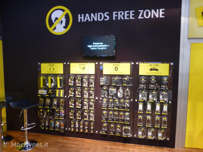 Delle cuffie Jabra Revo abbiamo già parlato qui: ora dopo un’altra visita nello stand possiamo offrire le prime impressioni sugli auricolari Jabra Vox. La forma particolare e originale dei due auricolari è stata progettata per massimizzare la resa audio e anche i bassi: al massimo del volume l’ascolto con le Jabra Vox risulta quasi doloroso per i nostri timpani. A questo livello massimo abbiamo rilevato qualche piccola distorsione ma lo stand trafficato della fiera non è la condizione ideale per una prova in ogni caso, vista la potenza audio esuberante, per l’ascolto è comunque consigliabile ridurre di una o due tacche al di sotto del volume massimo.