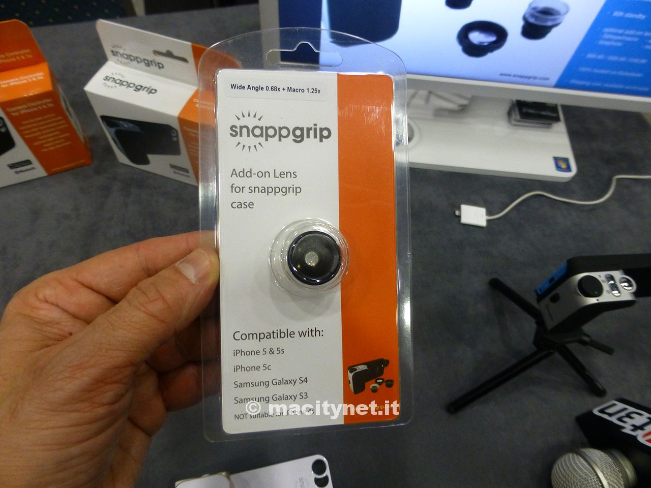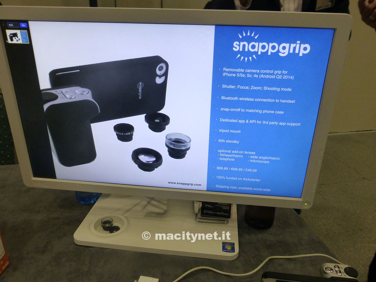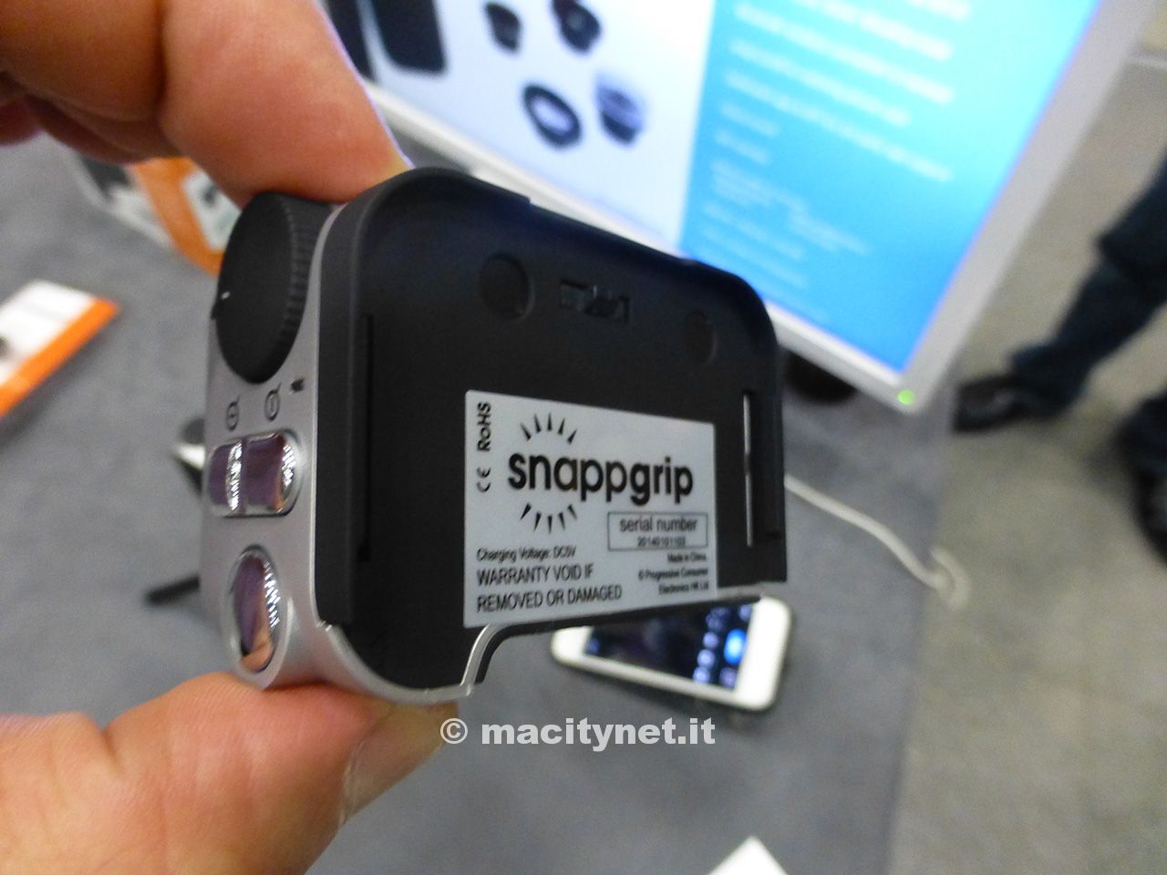 Snappgrip, presentato a Barcellona all’MWC14 e finanziato con una raccolta fondi lanciata da Kickstarter, è un’impugnatura ergonomica e compatta, adatta a chi desidera scattare fotografie con il proprio telefono con comodità e a chi è alla ricerca di accessori non ingombranti che consentano di avere fotografie migliori, ma scattate sempre con il proprio inseparabile dispositivo portatile.