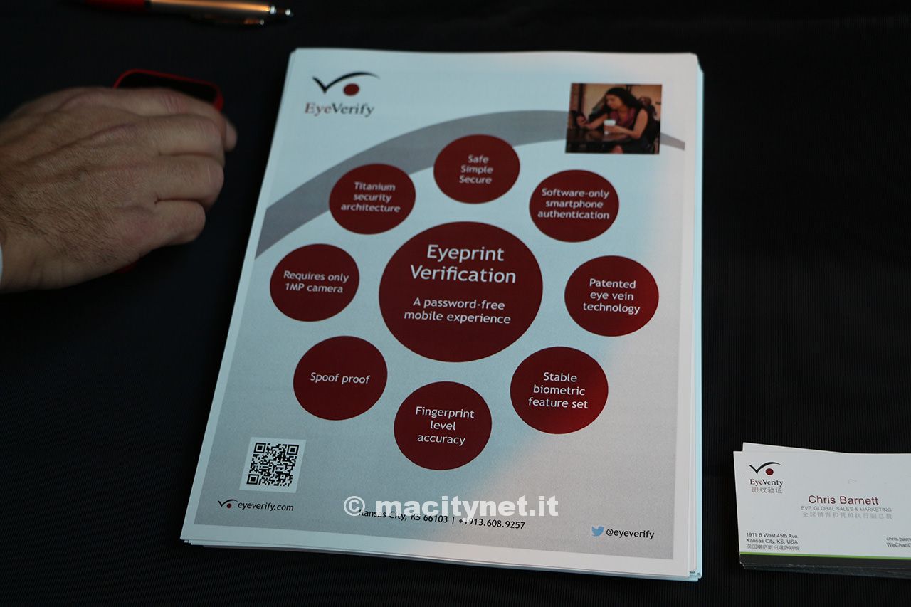 Tra le tante aziende presenti a Barcellona negli eventi pre-fiera, c’è Eyeverify, una realtà americana che sta lavorando per creare un sistema affidabile per l’identificazione usando la lettura dell’occhio. Questo tipo di misurazione biometrica non è una novità assoluta; si basa infatti su un principio noto e già utilizzato da alcune agenzie di sicurezza che dispongono di macchine capaci di leggere a seconda dei casi la conformazione dell’iride o le vene del globo oculare, tutte e due del tutto uniche e specifiche di un individuo e quindi simili alle impronte digitali.
