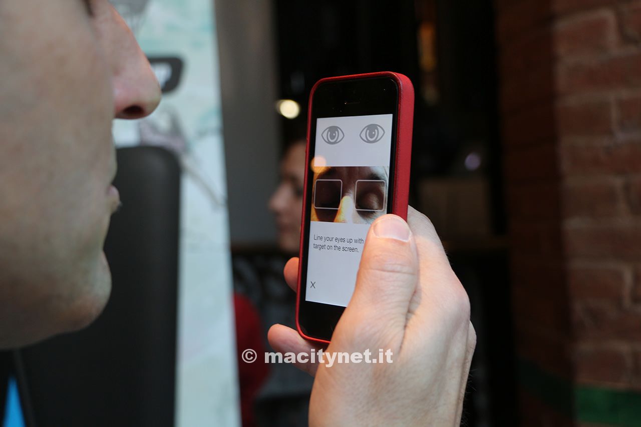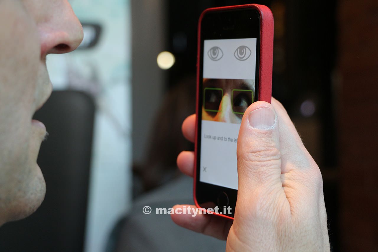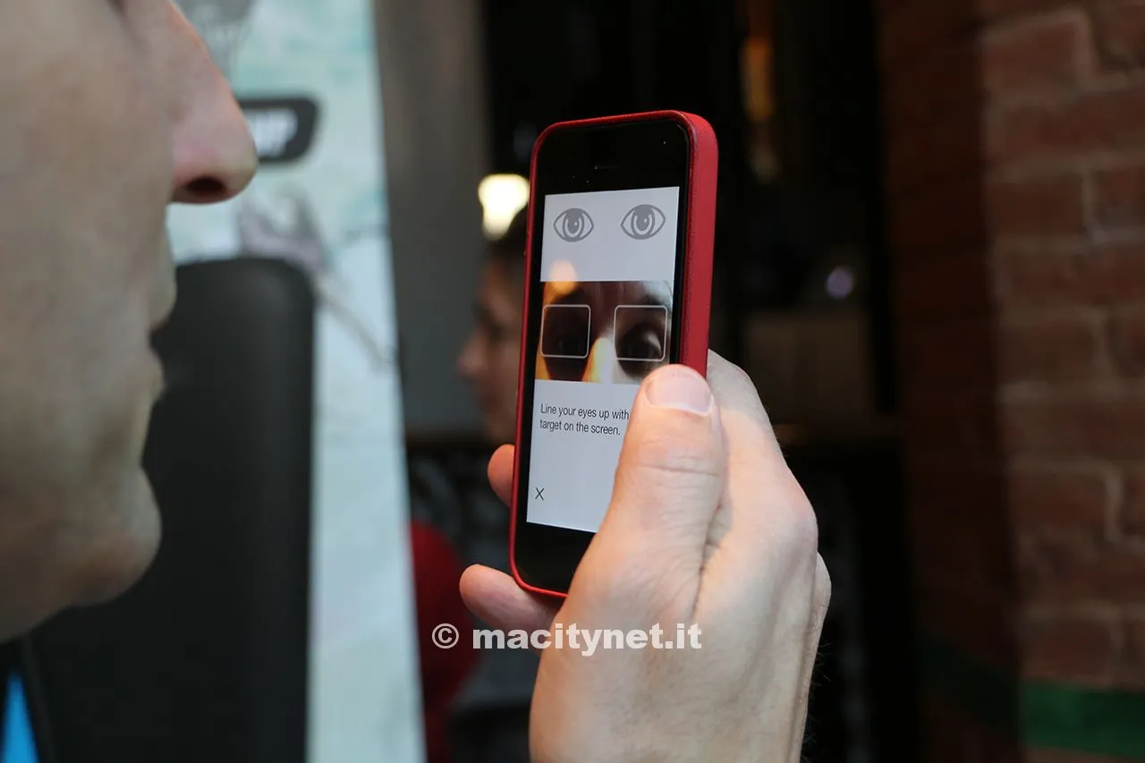 La tecnologia di Eyeverify porta questo su iPhone attraverso la fotocamera e una specifica applicazione. Tenendo il telefono ad una distanza predeterminata dal volto e centrando gli occhi su uno schema presentato dall’applicazione, il sistema è in grado di leggere le vene degli occhi, per l’angolo destro e sinistro, e di identificare univocamente un utente.