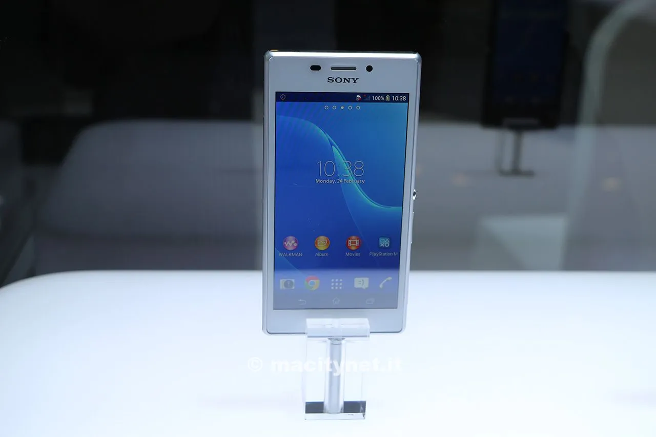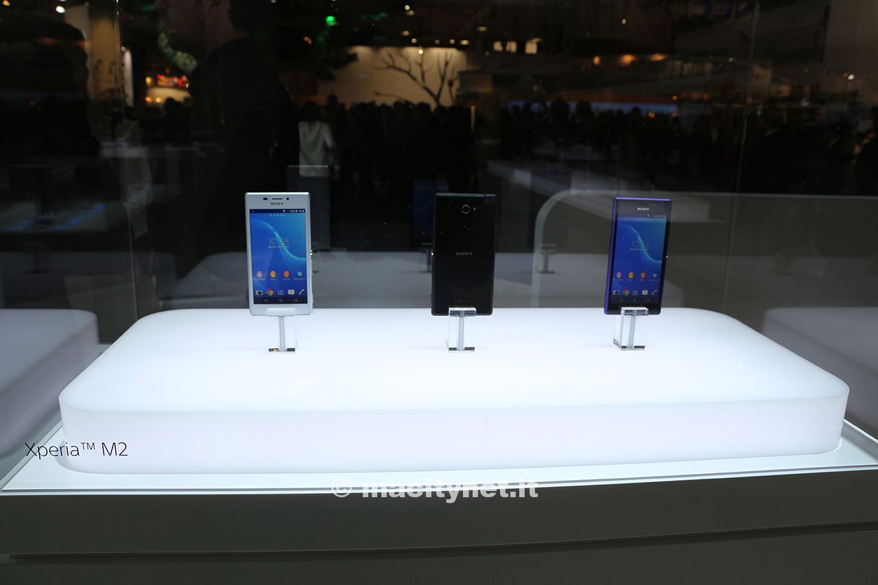 A completare la presentazione Sony a Barcellona anche un altro modello di smartphone, questa volta dedicato alla fascia media: Xperia M2. Si tratta di un terminale con lo stesso design della serie Z, ma con caratteristiche certamente inferiori, seppur degne di nota. Il processore è un qualcomm Snapdragon 400 quad core da 1.2 GHz, Mentre il display da 4,8 pollici ha una risoluzione qHD. La fotocamera è da otto megapixel. Per questo terminale si prevede un’ottima autonomia, con una batteria da 2300 mAh e un nuovo sistema chiamato stamina 3.0. Quest’ultimo dispositivo arriverà sul mercato a partire da aprile prossimo in tre colorazioni: nero bianco e viola. A differenza dei due precedenti modelli sopraelencati, questo terminale arriverà sul mercato con la distribuzione Android 4.3 e non KitKat. Nessun prezzo di lancio è stato ufficialmente comunicato.