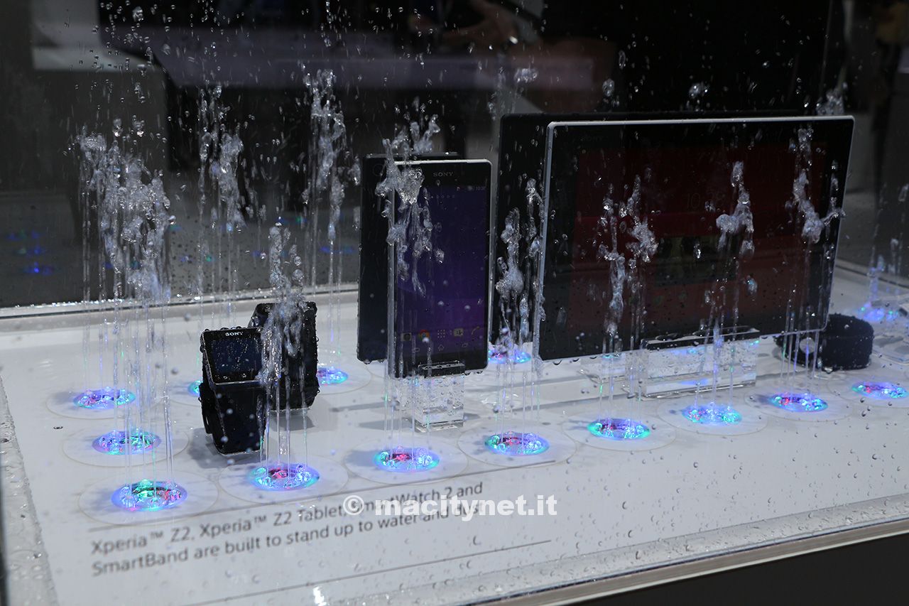 Vero protagonista della presentazione Sony è certamente lo smartphone Z2. Il terminale presenta, ovviamente, caratteristiche hardware tipiche dei top di gamma attuali, con processore snapdragon 801 quad-core con clock da 2.3 GHz e 3 GB di RAM. Presente il supporto alle reti LTE, mentre ad alimentare il dispositivo una batteria da ben 3.200 mAh. L’introduzione di una batteria così capiente, comunque, non ha influito sullo spessore, che rimane contenuto in 8,2 mm.