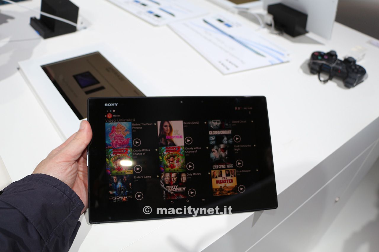 Senza troppa fantasia, Sony ha presentato anche un tablet con lo stesso nome. Si tratta di Z2 tablet con display da 10,1 pollici, alimentato dallo stesso processore dello smartphone omonimo. La fotocamera invece viene ridimensionata: quella posteriore è da 8,1 megapixel, mentre quella frontale da 2,2 megapixel, ma comunque in grado di registrare video in HD. Sony è riuscita a contenere lo spessore di questo terminale in soli 6,4 mm, con un peso di 426 grammi. Entrambi dispositivi Z2, smartphone e tablet, arriveranno sul mercato con l’ultima versione di sistema Android, ossia la 4.4.2.