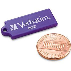 Il primo prodotto mostrato nel video è una chiavetta USB di memoria della famiglia Tuff-N-Tiny: il connettore USB è costituito solamente da tracciati in rame stampati sul sottilissimo corpo della chiavetta. Nonostante le dimensioni lillipuziane la nuova chiavetta Verbatim offre capacità  di memoria fino a 8GB, inoltre è resistente all’acqua, alla polvere e anche agli urti.