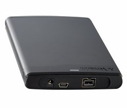 Successivamente viene mostrato il disco fisso portatile Verbatim Clon caratterizzato da un resistente involucro in gomma, con peso e dimensioni ridottissimi. Può essere riposto in una tasca e offre capacità  fino a 500GB. La rassegna dei dischi fissi esterni è completata con il modello SureFire anche questo con capacità  fino a 500GB ma dotato sia di collegamento USB sia del più veloce e affidabile FireWire 800, ideale per l’impiego con i Mac. Nella confezione è inclusa anche una pratica custodia per il trasporto.