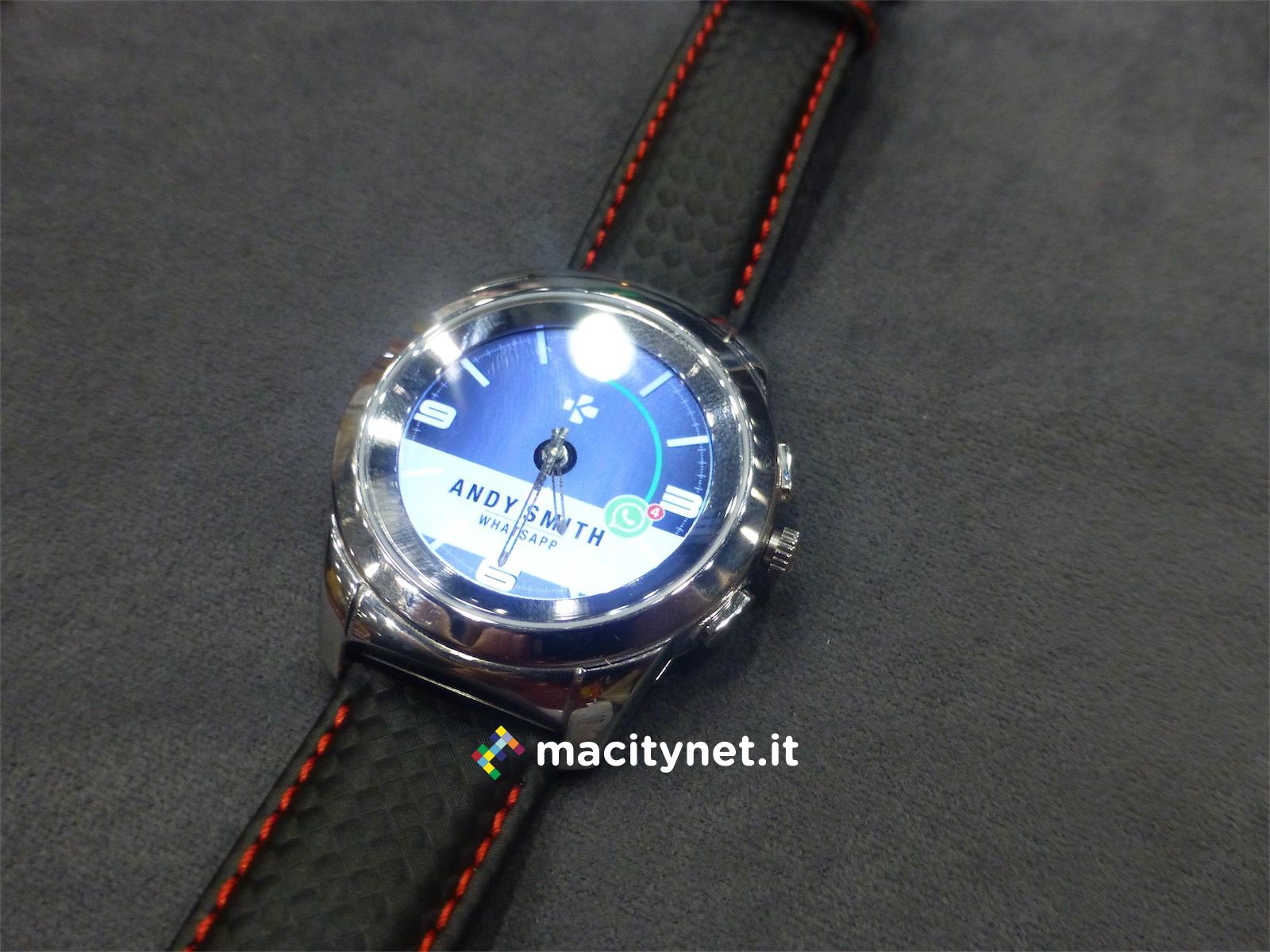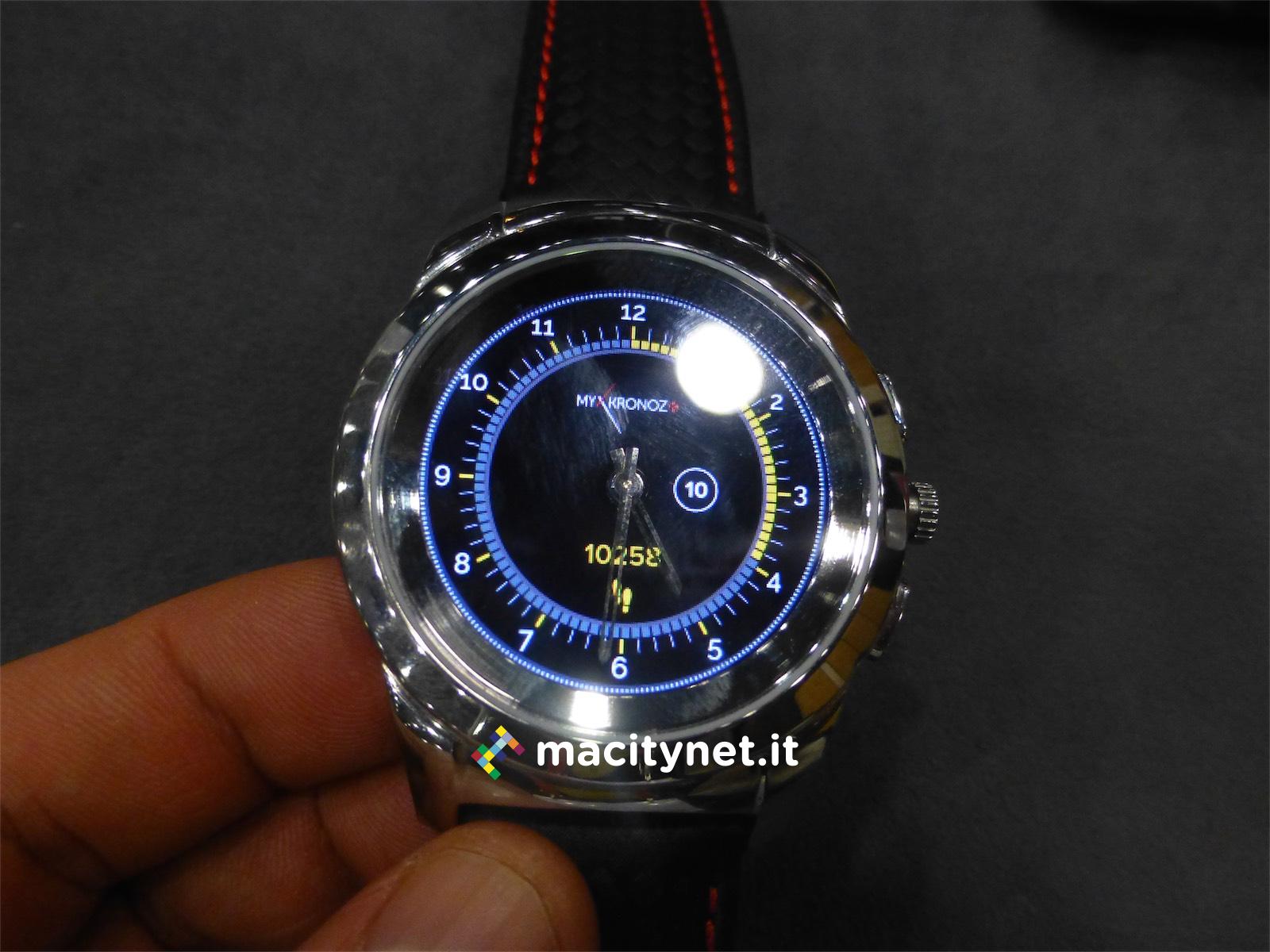 L’autonomia degli smartwatch lascia a desiderare ma dalla Svizzera arriva la soluzione: MyKronoz ZeTime, cui abbiamo già fatto un cenno, è il primo smartwatch ibrido che unisce le classiche lancette meccaniche con uno schermo touch a colori. L’indicazione dell’ora funziona sempre ed è smart: quando l’indossabile comunica con iPhone o Android rileva in automatico l’ora in base al luogo e al fuso orario locale, muovendo di conseguenza le lancette meccaniche. Il meccanismo smart aziona le lancette con una autonomia che secondo il costruttore arriva fino a 30 giorni, contro i circa 3 giorni di autonomia della parte smartwatch.