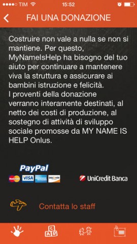 Con l’app MyNameIsHelp i donatori avranno la possibilità di gestire direttamente dal proprio iPhone le donazioni e ricevere informazioni sui bambini sostenuti. L’utente potrà scegliere di adottare altri bambini o altri membri della loro famiglia. Il supporto permetterà ai bambini di migliorare la loro vita, partecipando alle attività scolastiche e ricreative. Il bambino adottato a distanza sarà monitorato e seguito nel percorso di crescita scolastica dallo staff italiano e africano dei volontari di MyNameIsHelp. Al termine di ogni trimestre ogni genitore adottivo riceverà la pagella comprovante i progressi negli studi e nelle relazioni sociali.