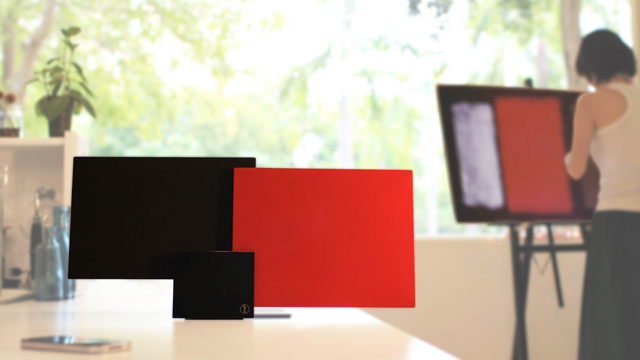 COLLAGE, top di gamma, è un prodotto “stanziale”, non essendo possibile alimentarlo a batteria a causa del maggior numero di altoparlanti e della limitata autonomia che ne conseguirebbe. Dotato di 2 tweeter a pannello, due woofer al neodimio e un radiatore passivo (emissione a dipolo) offre le stesse caratteristiche del fratello minore in quanto a connettività, aggiungendo però un processore DSP in grado di ottimizzare l’emissione in base al brano suonato. Lo chassis è nero con griglia frontale su due livelli e in doppio colore. È possibile posizionarlo su un mobile o appendelo al muro, rimuovendo la base ed è disponibile nei colori rosso/nero o bianco/beige.