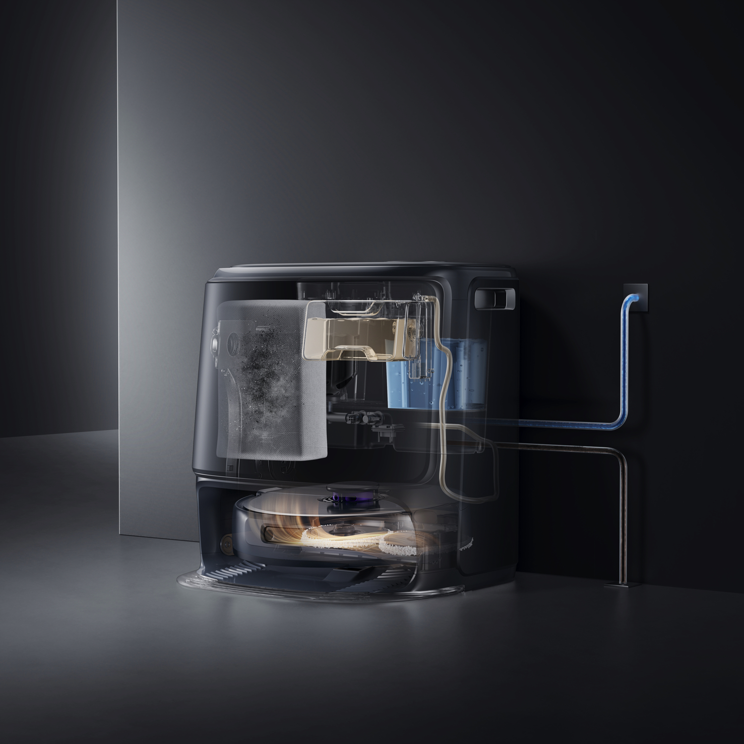 Le specifiche hardware sono impressionanti, ma lo sono ancora di più le funzioni AI e le tecnologie sviluppate per ridurre sempre più numero e frequenza degli interventi richiesti all’utente. Per gli smanettoni basti sapere che il chip principale è quad core a 1,8GHz e si occupa di analizzare quantità e tipo di sporco, secco o bagnato, per intervenire con aspirazione per il secco, con il panno bagnato per l’umido, regolando anche la temperatura, più alta per rimuovere le macchie oleose.