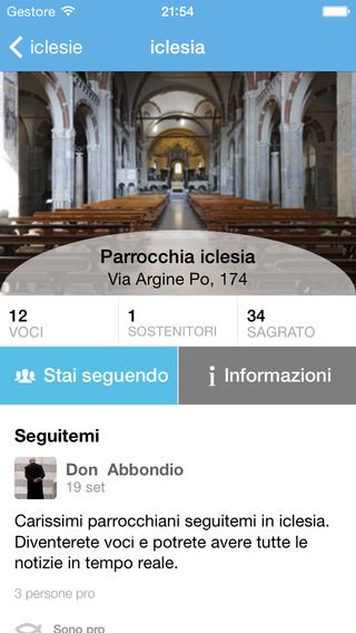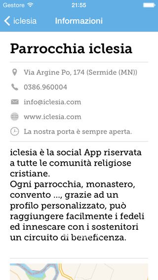 Iclesia è la prima social app social per la Chiesa, una community gratuita dedicata a tutti i fedeli e alle parrocchie, uno strumento utile per condividere notizie e per mettere in contatto i membri di una comunità. Per tutte le comunità cristiane che sono alla ricerca di uno strumento nuovo per veicolare i propri messaggi e per condividere con i fedeli notizie e informazioni utili, Iclesia è uno strumento interessante da prendere in considerazione: si tratta di una piattaforma (portale web, app per iOS e per Android) messa gratuitamente a disposizione di tutte le realtà religiose cristiane. Si tratta di una specie di piazza, dove incontrarsi, condividere i bollettini parrocchiali, gli orari della Messa, le informazioni su battesimi, comunioni, matrimoni, funerali, inviti a campi scuola, gite, pellegrinaggi, corsi in preparazione del matrimonio o gruppi di riflessione sulla Parola, sul catechismo o su argomenti di interesse.