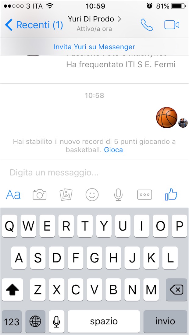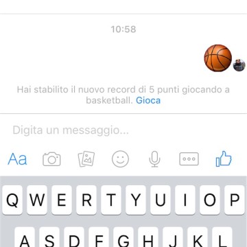 Il gioco è nascosto in Facebook Messenger nel senso che non può essere lanciato con un tasto dedicato, ma lo sviluppatore ha svelato direttamente la sua esistenza nelle note di rilascio di questa versione dell’app. Per iniziare basta aprire una chat con un nostro contatto, fare un tap nell’area dove scrivere il testo e poi selezionare la tastiera di iPhone e poi le emoji, aprendo la sezione indicata con un pallone. Nella seconda riga si trova il pallone di basket arancione che dobbiamo selezionare e inviare al nostro amico.