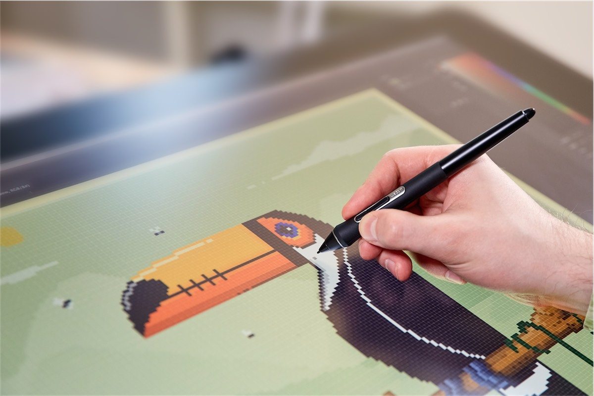 La tavoletta è pressoché priva di parallasse e jitter, pur utilizzando un ottimo schermo 4K completo della resa cromatica 99% di Adobe RGB. Il display è in vetro leggermente satinato per ridurre i bagliori e i riflessi, offrendo al contempo la sensazione naturale di penna su carta durante il disegno.