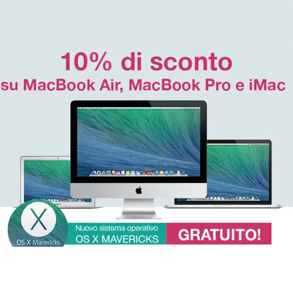 Ricordiamo che su tutti i nuovi computer acquistati sarà possibile istallare gratuitamente (se non ancora presente nativamente sul computer) il nuovissimo sistema operativo Apple OS X 10.9 Mavericks, nonché la nuova versione della suite iLife (iPhoto, iMovie e Garage Band) e la suite per il lavoro iWork (Pages, Numbers e Keynote). Per saperne è possibile visitare la pagina web dedicata Med Store.