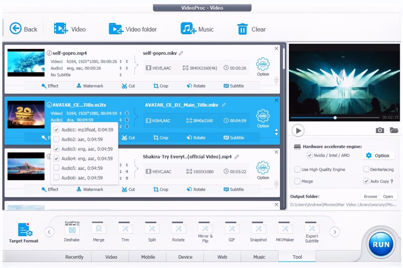 Tra le altre cose supporta l’accelerazione hardware della GPU e pertanto riesce a convertire i video a una velocità 47 volte maggiore con un utilizzo ridotto della CPU, portando a termine l’impresa anche su computer datati o di fascia bassa. E’ in grado poi di convertire file audio e DVD, può elaborare le immagini ISO e le cartelle video dei DVD ed offre tutta una serie di strumenti con cui è possibile apportare modifiche come tagli, regolazioni, compressioni e via dicendo.