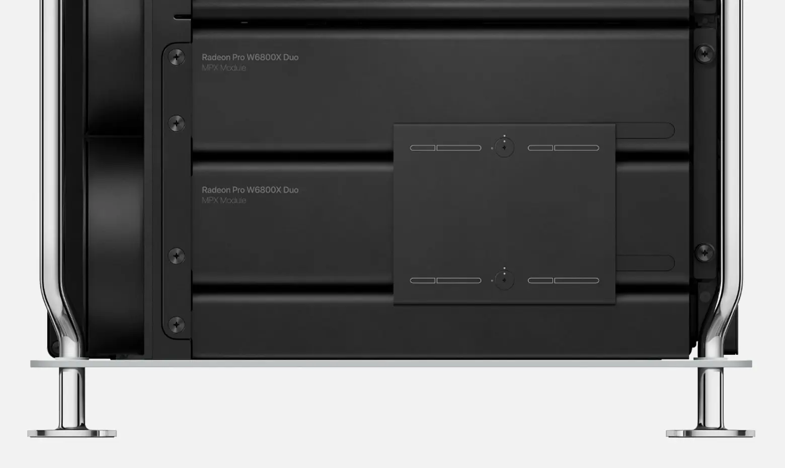 I moduli (ma viaggiamo di fantasia) potrebbero permettere di incrementare le performance grafiche, oppure permettere di migliorare le performance in generale con chip dedicati in grado di incrementare core di GPU e CPU, sulla falsariga degli Expansion Module, o MPX Module, visti sui Mac Pro, che consentono di offrire configurazioni fino a quattro GPU installando schede in slot di espansione PCIe, usando il collegamento Infinity Fabric Link che consente un trasferimento dei dati fino a cinque volte più veloce tra le GPU.