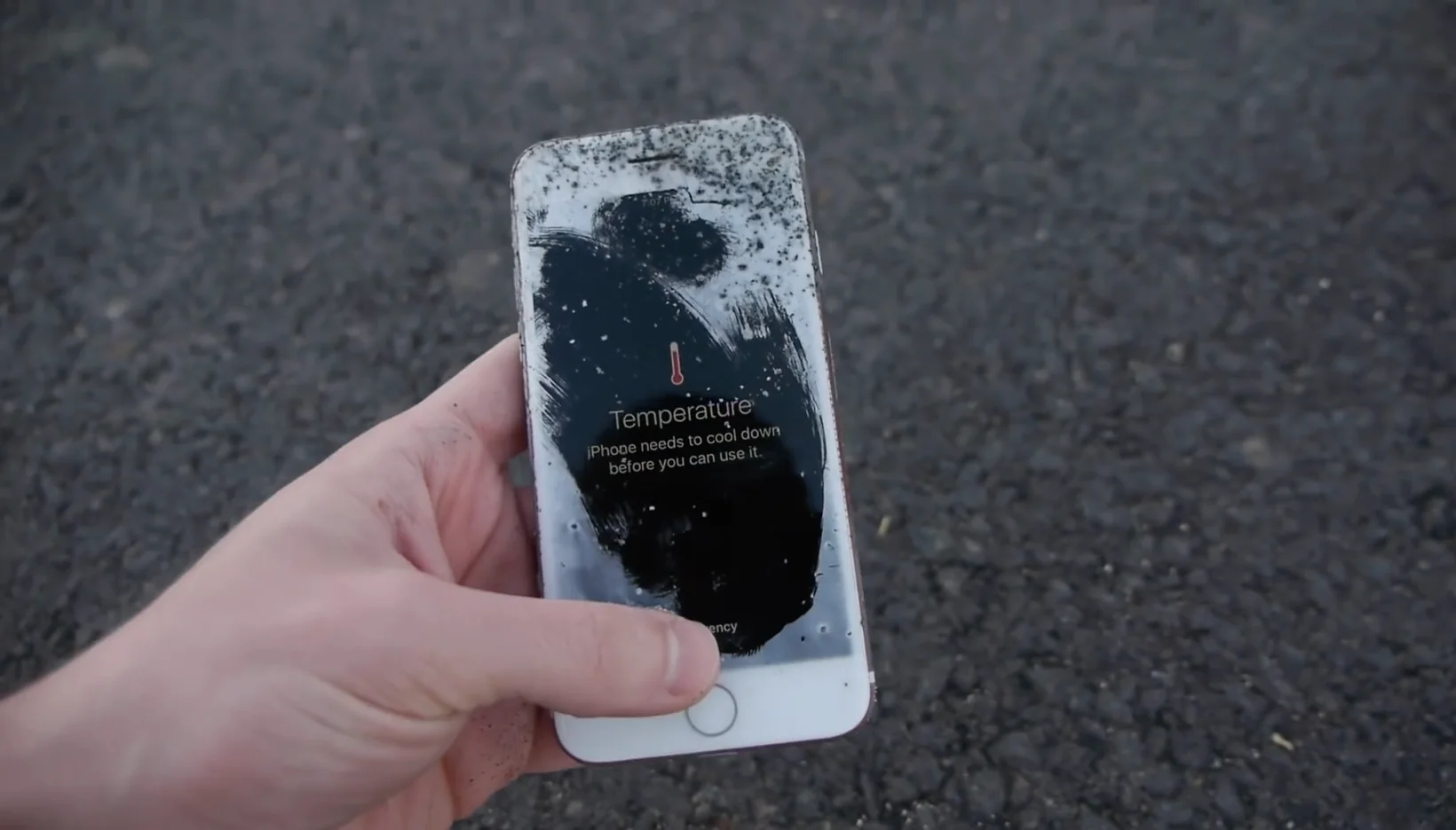 Il risultato è dei più scontati, ma solo per il secchiello in plastica. Mentre quest’ultimo, come ci si aspetterebbe, viene letteralmente liquefatto, iPhone 7 rimane perfettamente funzionante. Certo, un po’ di sporcizia sul display e una scocca posteriore completamente bruciata, ma nulla di più. Il display, perfettamente visibile, mostra il banner di temperatura elevata, prima di riprendere il corretto funzionamento pochi minuti più tardi, con tanto di touch funzionante.