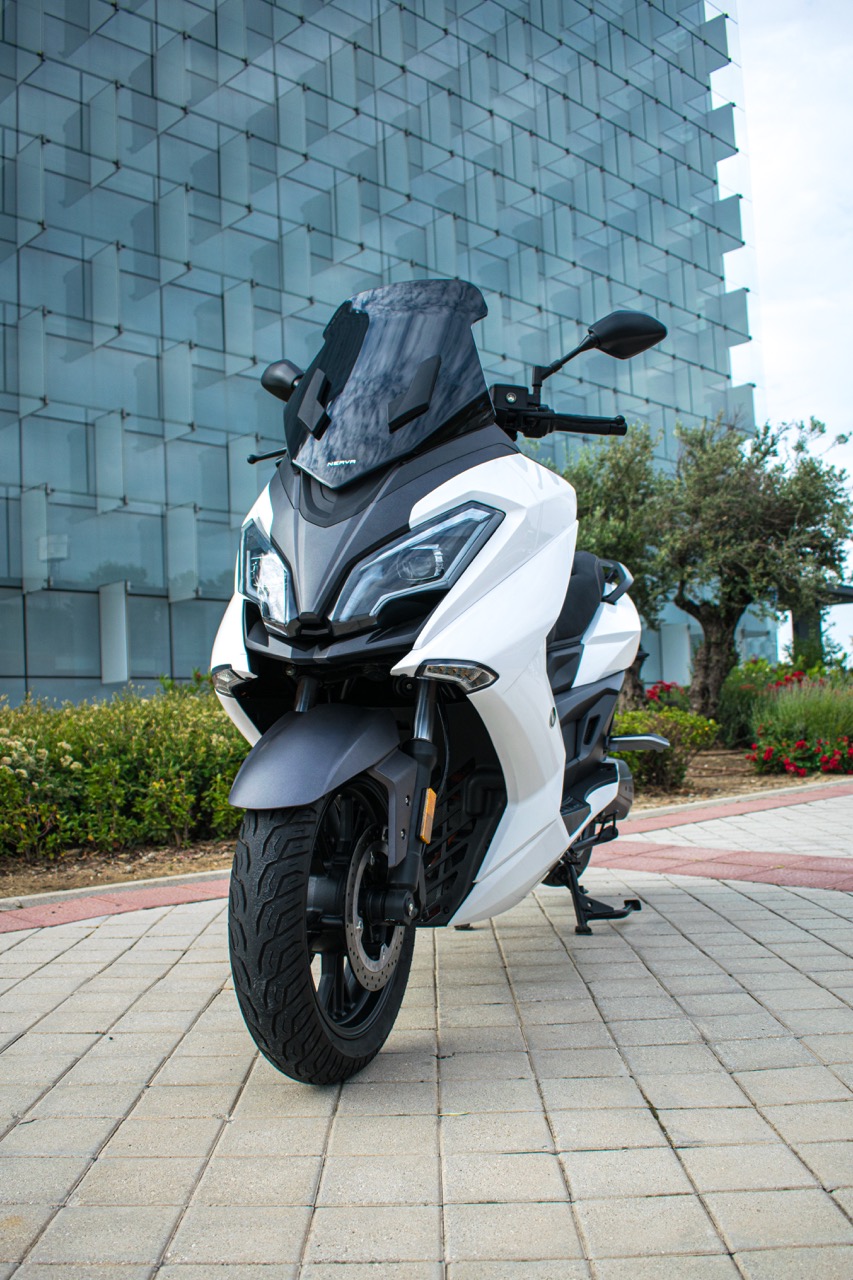 Il modello EXE è il primo scooter elettrico firmato Nerva che viene commercializzato in Italia. Si tratta di uno scooter GT con un buon livello di equipaggiamento. Lo scooter è indicato come particolarmente adatto alla guida su strada aperta, ideale in città per comfort, protezione e facilità di guida.