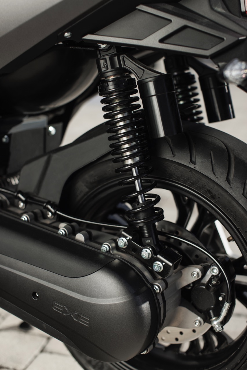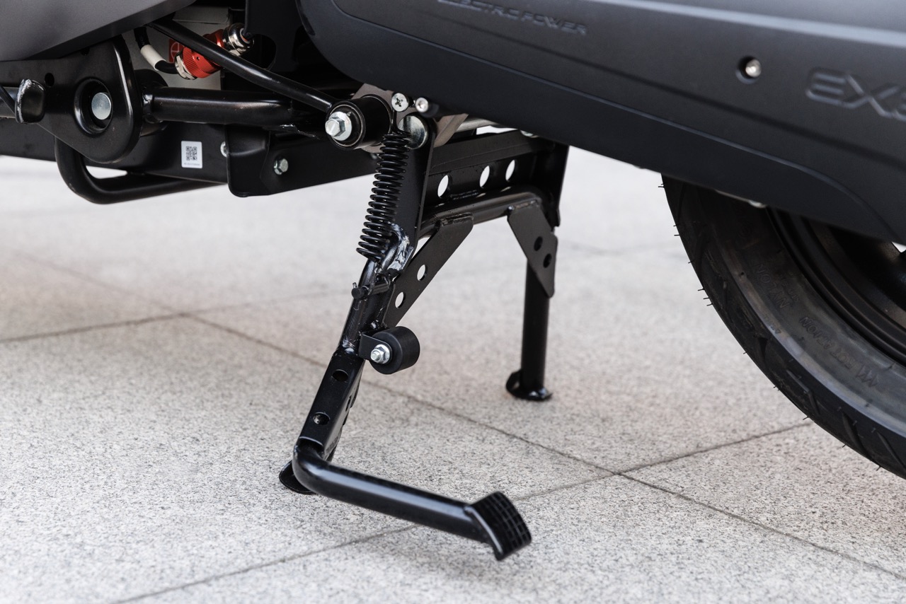 Il telaio si basa su una struttura multitubolare in acciaio con rinforzi nella zona centrale e nel cannotto di sterzo, dove si uniscono i quattro tubi principali del telaio. Nella zona centrale, all’interno del tunnel, sono alloggiate le batterie. Una posizione che favorisce l’accentramento delle masse del veicolo per mantenere il baricentro basso aumentandone l’agilità e favorendo l’equilibrio di guida.In Italia lo scooter elettrico Nerva Exe