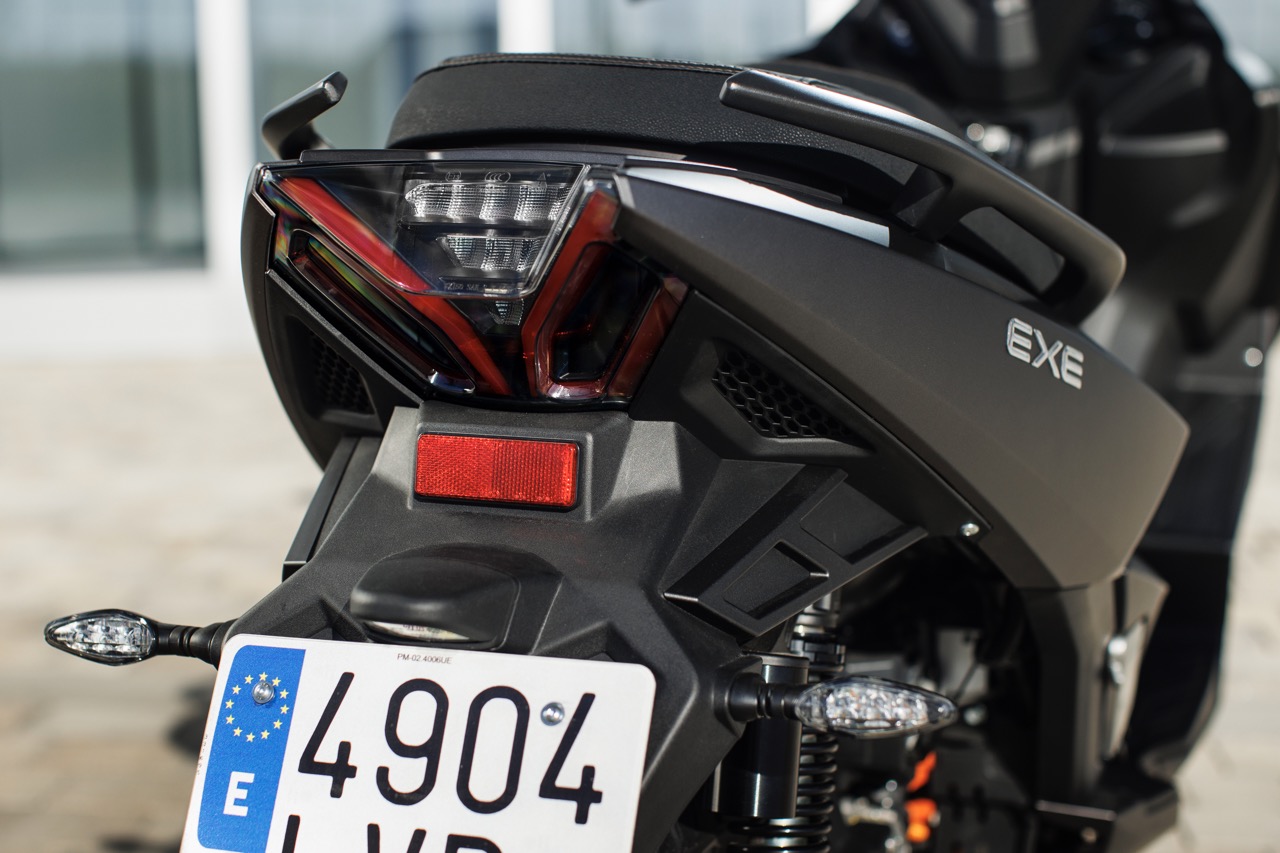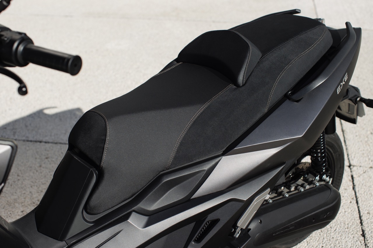 In ambito extraurbano, oltre alla velocità di punta di 125 km/h, Nerva EXE promete comfort per pilota e passeggero, protezione superiore alla media di categoria (grazie al parabrezza alto e alla carrozzeria avvolgente) e buona apacità di carico. La disposizione delle batterie LFP nel pianale consente di avere un vano sottosella ampio, dove trovano posto un casco integrale e uno jet, oltre ad altri oggetti di uso comune.
