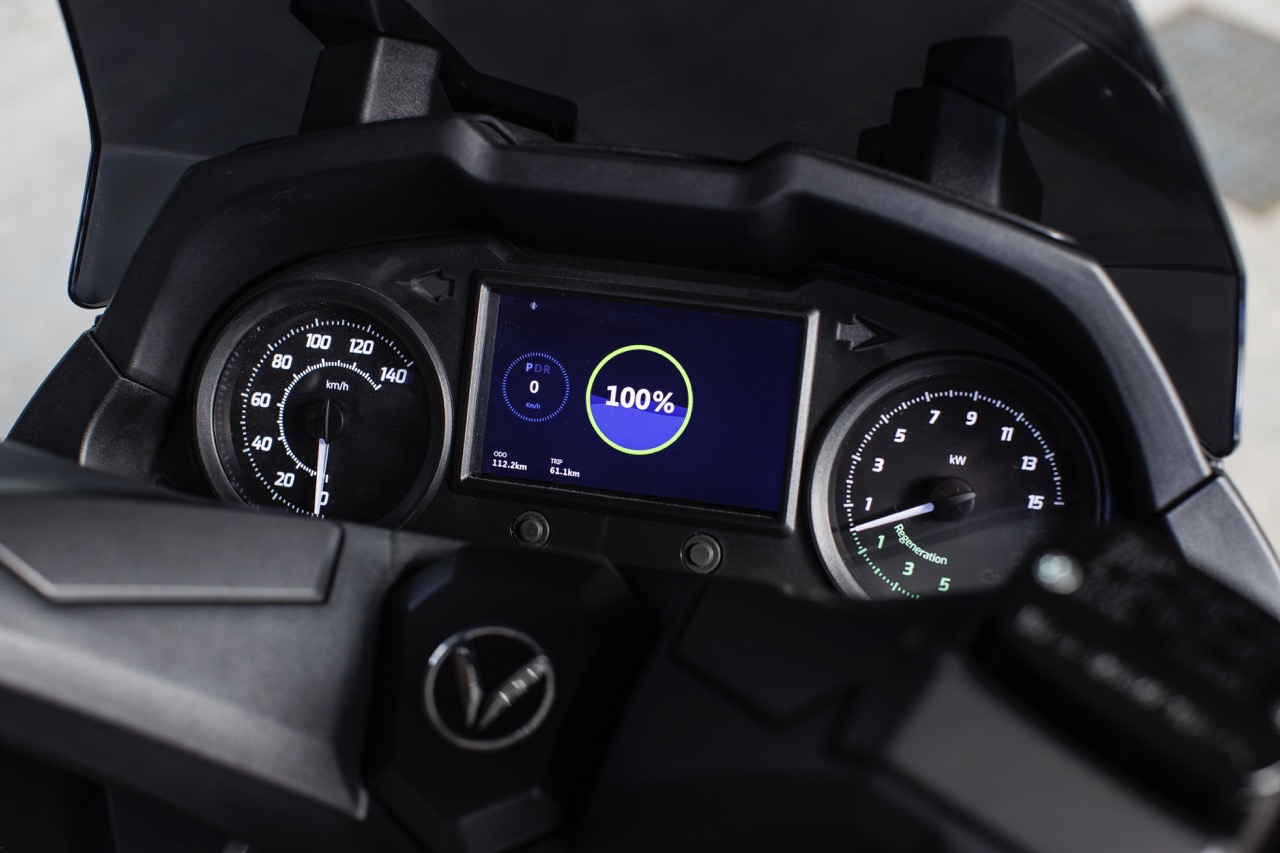 Dispone di una presa USB accessibile nel retroscudo, ed è dotato di fari LED ad elevata luminosità sia anteriormente che posteriormente. La strumentazione con pannello TFT permette la connessione Bluetooth con il cellulare.