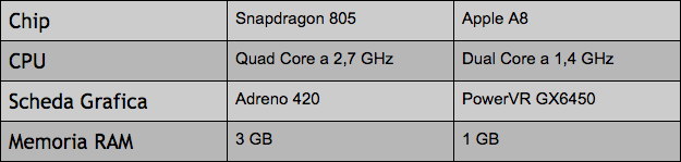 A prima vista si potrebbe pensare, in astratto, ad un processore quad-core più performante di un dual-core. Tuttavia, paragonare uno Snapdragon 805 al processore proprietario di Apple A8 non è affatto semplice. Storicamente, i processori di Apple, seppur in assenza di numeri e cifre eclatanti, hanno sempre fornito affidabilità e velocità; del resto, anche il processore del Nexus 6, attualmente top di gamma, assicurerà reattività al nuovo sistema operativo Android L. Insomma, da questo punto di vista non è possibile azzardare paragoni, ma è facile pensare a due telefoni massimamente reattivi e privi di lag. iPhone 6 Plus ha già dato prova di non avere impuntamenti di alcun genere, per Nexus 6 sarà necessario aspettare le prove sul campo.