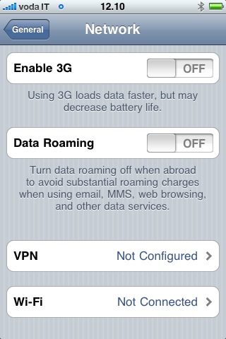 Nell’ultima versione, quella che dovrebbe divenire operativa con il lancio di iPhone 3.0, tra le stringhe del codice non si trova alcun cenno alla possibilità di connettere il telefono al computer, una delle novità dell’ultima versione. Al momento non è possibile dire se nel momento del lancio del nuovo firmare ci saranno a disposizione nuovi bundle e se in questi sarà presente l’opzione per il Tethering, quel che è sicuro è che al momento (come si vede nella foto) la funzione non è attiva in settaggi –> generali —> Network.