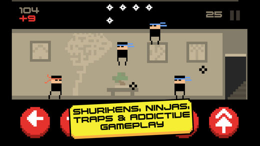 Ciascuna schermata statica rappresenta, in realtà, un livello di gioco. In ciascuna area il ninja dovrà afrontare trappole ed elementi di disturbo sempre differenti: piattaforme chiodate, frecce, boss, nemici che sbarrano il cammino, funi da agguantare al volo e chi più ne ha, più ne metta. Il sistema di controllo è piuttosto tradizionale e permetterà al ninja di muoversi avanti e indietro tramite le classiche frecce direzionali. Affianco a questi pulsanti, invece, appariranno altri tasti virtuali, come quello per il salto, il doppio salto,la scivolata o il fuoco, che varieranno a seconda del livello da affrontare. Non in tutte le schermate è possibile lanciare stellette ninja, così come non sarà sempre possibile sfruttare il doppio salto. Insomma, ad ogni prova il protagonista di gioco disporrà di abilità uniche, che aiuteranno a raggiungere la porta d’uscita.