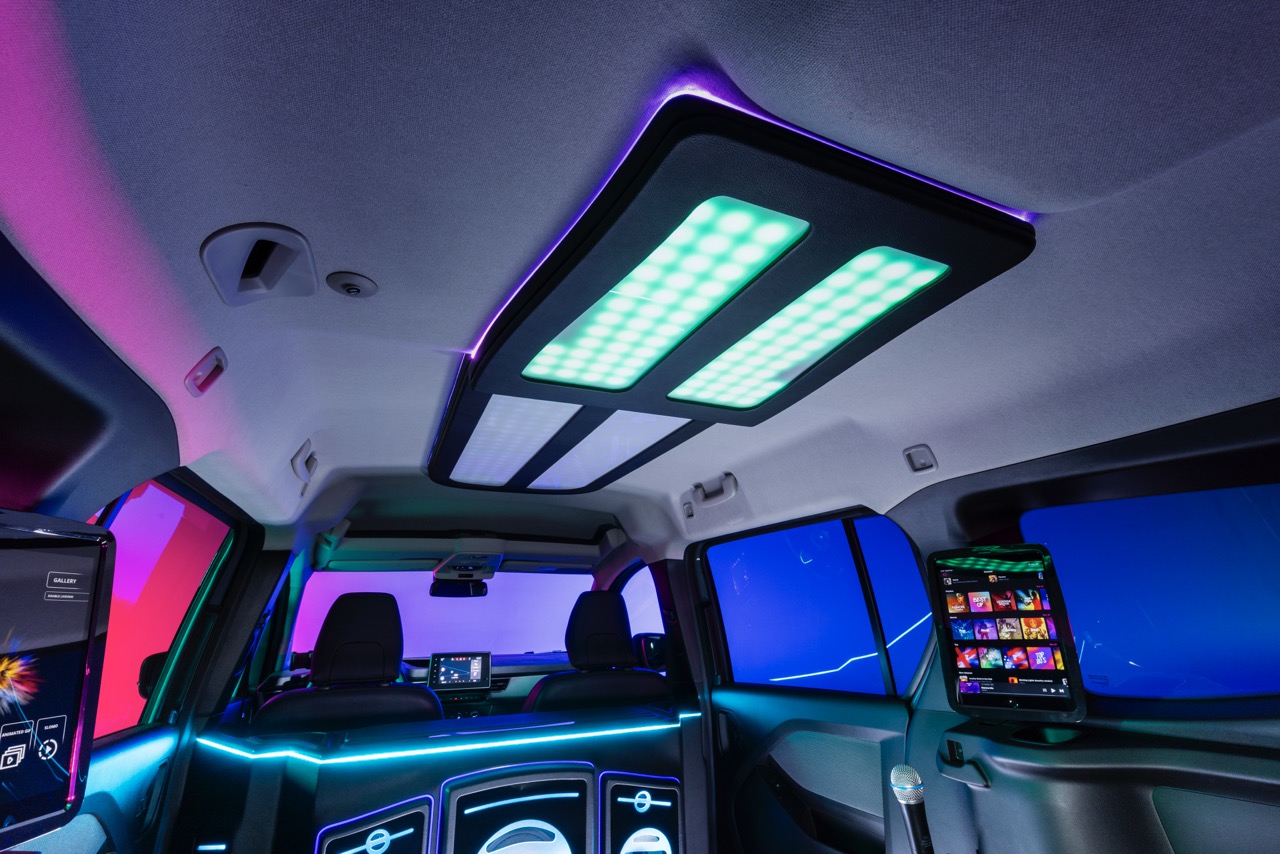 Per rendere ancora più coinvolgente l’esperienza, l’illuminazione degli interni e del tetto è sincronizzata con il ritmo della musica, aumentandone l’immersività.