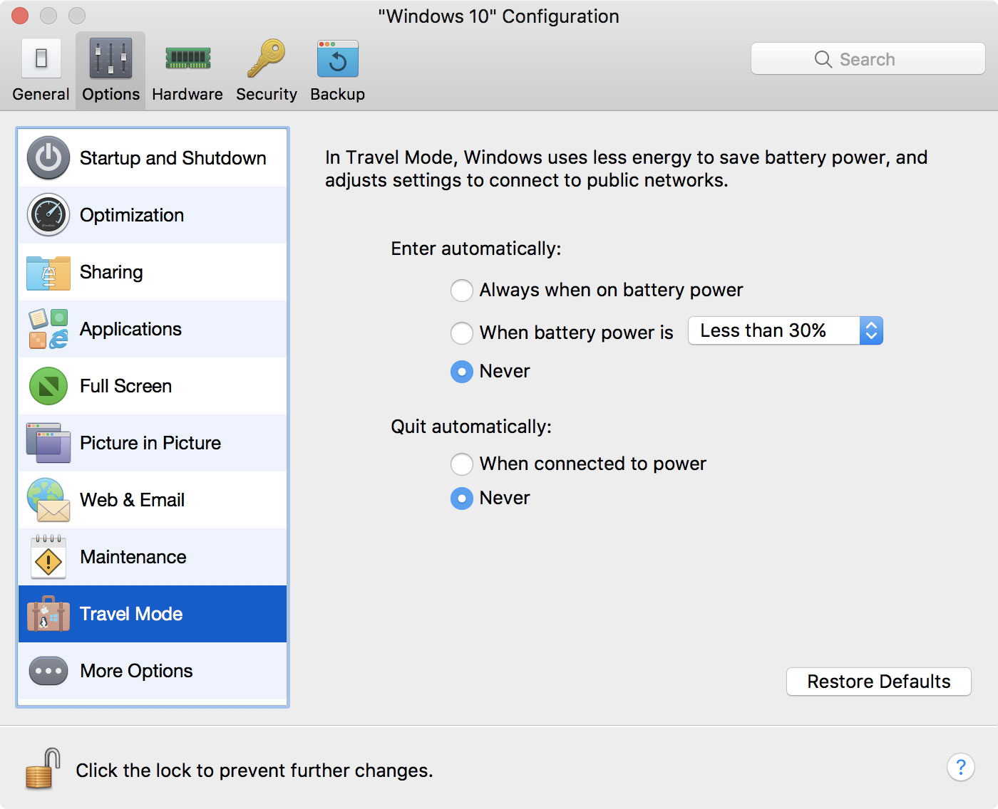 La versione Pro di Parallels Desktop 13 permette di assegnare fino a 32 core (vCPU) e 128 GB di vRAM alle macchine virtuali, possibilità interessante in prospettiva dell’arrivo dei nuovi iMac Pro con processori Xeon. Il menu “View Set Resolution” consente di cambiare al volo la risoluzione per podcast, video tutorial o web browsing, inclusi rapporti di aspetto quali: 4:3, 16:9 e 16:10 con risoluzioni da 1.024 x 768 pixel a 3.360 x 2.300 pixel. La funzione “Quick Virtual Machine IP Address Lookup” individua e copia al volo l’indirizzo IP dalla GUI alla clipboard del Mac con un solo click.