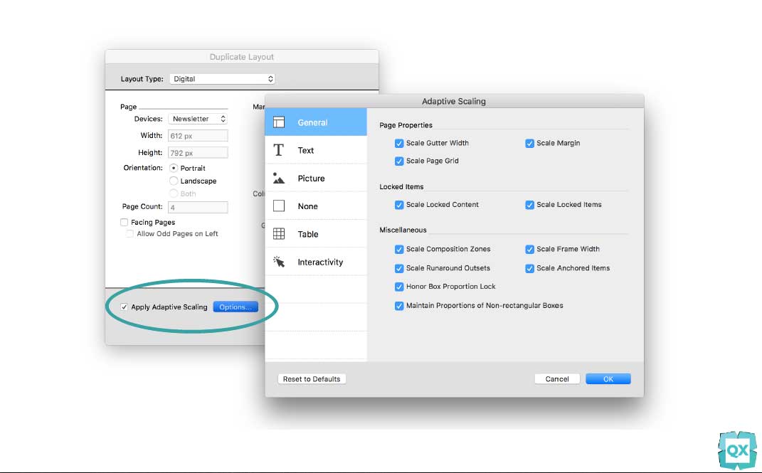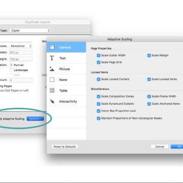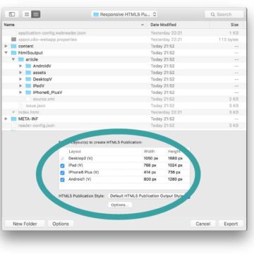 Per quanto riguarda il digital publishing sono state velocizzate le funzioni di stampa dei layout digitale usando l’adaptive scaling e queste possono essere sfruttate anche quando si cambiano le proprietà del layout (es. dal formato A4 all’US Letter). Sono supportate le pubblicazioni responsive in HTML5 ed è possibile esportare i layour per schermi di varie dimensioni in un’unica pubblicazione HMTL5 (la pubblicazione sarà di tipo responsive, visualizzando il layout con modalità diverse secondo il dispositivo trovato). I layout possono essere esportati come app per iOS che è possibile inviare ad Apple per l’approvazione e distribuzione sull’App Store.