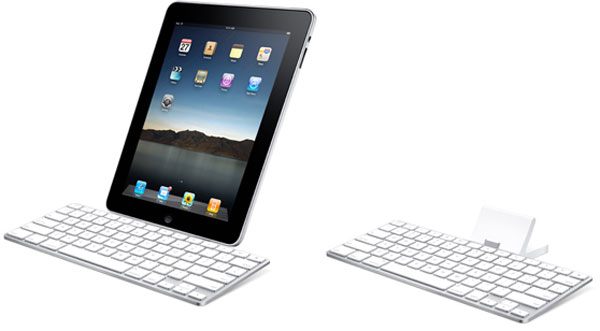 Primo tra tutti ricordiamo l’accessorio opzionale iPad Keyboard Dock: si tratta di una tastiera super sottile, identica a quella in dotazione negli iMac e priva di tastierino numerico, in cui è applicato un dock connector che funge anche da base di appoggio di iPad. In pratica una volta fissato iPad all’iPad Keyboard Dock il tablet si trasforma in un mini computer portatile, dotato di tastiera hardware. Sul retro dell’accessorio l’utente poi dispone di un connettore Dock supplementare per collegare l’alimentazione o sincronizzare iPad con il computer, infine anche un jack per l’uscita audio a cui è possibile collegare un sistema di altoparlanti esterno. Di fatto con iPad Keyboard Dock è possibile trasformare iPad in un sistema per la produttività  estremamente portatile.