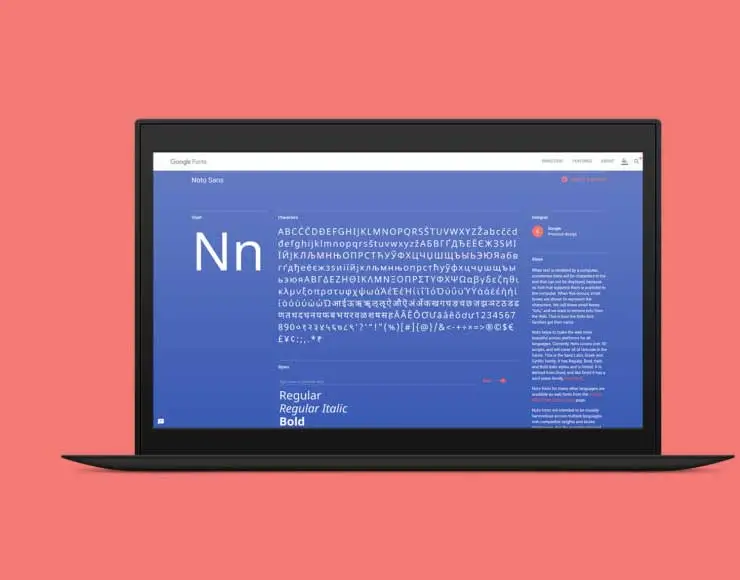 Per consentire agli utenti di semplificare la creazione e la condivisione di informazioni nella lingua preferita, Google ha creato Noto, una famiglia di font open source che tiene conto di oltre 8000 lingue e supporta 110.000 caratteri. La famiglia di caratteri copre in pratica ogni singolo simbolo riconosciuto dallo standard Unicode.