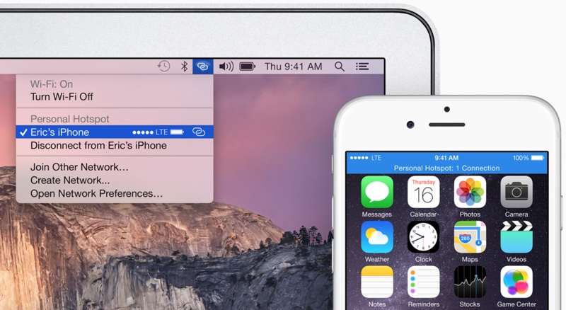 Altra caratteristica molto attesa che arriverà soltanto lunedì prossimo con iOS 8.1. è l’hotspot istantaneo. Si tratta di un altra sfaccettatura di Continuity, che consentirà ad un Mac di attivare in remoto la funzionalità Hotspot di un iPhone, quando i due dispositivi sono vicini. Il Mac può rilevare automaticamente un iPhone con Hotspot e gli utenti potranno connettersi al relativo hotspot dell’iPhone tramite il menu Wi-Fi del Mac, senza necessità di estrarre l’iPhone dalla tasca.