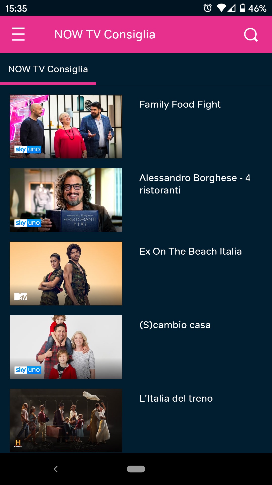 L’applicazione di NOW TV è purtroppo mediocre: dispone di un menù completo che permette di navigare all’interno di tutti i contenuti disponibili (anche quelli non inclusi nel proprio abbonamento), offrendo menù di navigazione intuitivi, una funziona di ricerca efficace e opzioni di suggerimento di contenuti interessanti per l’utenza.