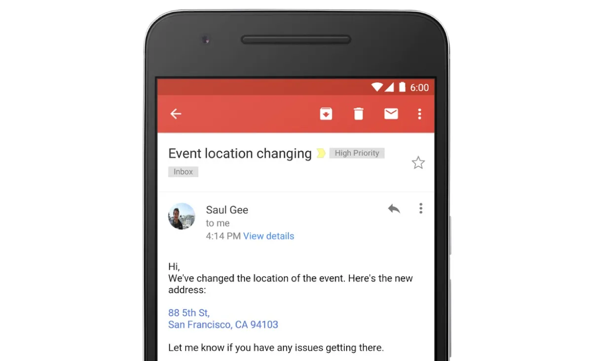 La prossima volta che riceverete per email un indirizzo, un contatto email o un numero telefonico non dovrete più copiarlo e incollarlo altrove. Google ha rilasciato un aggiornamento disponibile per le app di Gmail e Inbox per iOS e Android, nonché per la web app, che rende queste informazioni cliccabili.